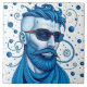 Azulejo Head Of Bearded Blue Alien With Glasses Sci-Fi Art