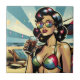 Azulejo Hermosa Mujer Pinup con una Cola en la playa