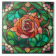 Hermosa Baldosa de Cerámica de Rosa Floral Estilo Vidrio Emplomado