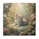Azulejo Hermoso Gatito en el Jardín Rosa (Shabby Chic)