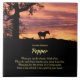 Personalizar esta hermosa teja conmemorativa de caballos con el nombre del caballo y crear una hermosa fotografía de arte en el amor por el recuerdo de un hermoso espíritu. La imagen tiene un toque surrealista, es una silueta de caballo en una hermosa puesta de sol con un roble.