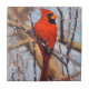 Hermosa escena invernal de un colorido pájaro del Cardenal Rojo encaramado en una rama de árbol desnudo, ilustracion de un original e impresionista pintura al óleo del pintor Daniel Fishback.