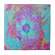 Azulejo Hibiscus psicodélico retro arcoiris azul
