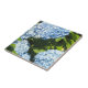hortensias azules de bonito en un día soleado con hojas verdes crujientes.