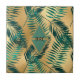 Hojas verdes exóticas de patrón disperso mostradas sobre un fondo dorado. Personalización de texto.