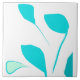 Cinco hojas de color turquesa sintéticas de gran tamaño dibujan esta baldosa de superficie blanca.