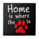 Un juego de palabras con la frase "El hogar es donde está el corazón", esta baldosa cerámica tiene las palabras "El hogar es donde está la [imagen impresa con una pata]", con la imagen impresa con una pata en rojo, que representa el "corazón". El regalo perfecto para los amantes de las mascotas.