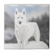 Esta hermosa cerámica muestra mi diseño de una husky blanca con ojos azules, sobre un fondo invernal. Un regalo encantador, ideal para un amante de Husky y una colorida adición para una mesa baja.