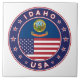 Insignia de Idaho con bandera de Idaho y bandera de los colores de EEUU, forma redondeada. Emblema de Idaho. Sello de Idaho. Colección de Estados Unidos.