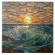Azulejo Ilusión de vidrio manchado con ondas oceánicas Sun