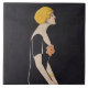 El Art Deco surgió del período de entreguerras, cuando la rápida industrialización estaba transformando la cultura. Uno de sus principales atributos es la adopción de la tecnología. El estilo se caracteriza a menudo por colores ricos, formas geométricas audaces y espléndida ornamentación. Marcello Dudovich fue pintor, ilustrador y diseñador poster italiano a principios de los años 1900 y fue considerado uno de los progenitores del diseño poster italiano. En sus primeros años trabajó en Milán y Bolonia y construyó una carrera reconocida como ilustrador. Dudovich es reconocido como uno de los mayores artistas posters de Italia y fue influenciado por muchos artistas contemporáneos, pero en última instancia su reputación viene de haber desarrollado su propio estilo distintivo y rico. Esta pintura con líneas simples y amplias representa a una mujer de cabeza roja vestida con un sencillo vestido negro con una flor naranja en el frente. Lleva un anillo naranja y esmalte de uñas naranja y anillos de brazaletes en un brazo.
