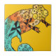Azulejo Ilustracion de doodle de arte de camaleón amarillo