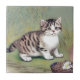 Azulejo Ilustracion de gatito vintage a rayas