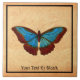 Un ilustracion vintage, alrededor de 1750, de una mariposa sudamericana roja y azul. Añade tu propio texto.