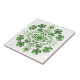 Esta imagen es simétrica y decorativa, con tréboles verdes (rocas de champú), acondicionada en un diseño circular de inspiración damasco. El foco central es un shamrock más grande rodeado de complejos remolinos y pequeños tréboles, creando un sentido de equilibrio y elegancia. El estilo general evoca el patrimonio irlandés y la suerte, a menudo asociados con el Día de San Patricio. El fondo es blanco.