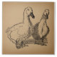 Un bonito diseño de arte de pato a la antigua con dos patos ilustrados con obras de arte antiguas sobre un fondo clásico de papel marrón.