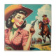 Azulejo Ilustracion Vintage Pulp Cowgirl