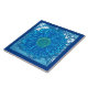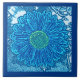 Mosaico en una huella de una margarita de Gerbera, basado en una fotografía, transformado digitalmente y teñido a mano, en tonos azules y turquesa con hielo azul pálido, agua e índigo profundo