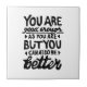 Impresión en lino blanco y negro de una cita motivacional que dice "Eres suficientemente bueno, pero siempre puedes ser mejor". Brinda un estímulo para que la gente sepa que la autoaceptación y el crecimiento van de la mano.