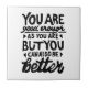 Impresión en lino blanco y negro de una cita motivacional que dice "Eres suficientemente bueno, pero siempre puedes ser mejor". Brinda un estímulo para que la gente sepa que la autoaceptación y el crecimiento van de la mano.