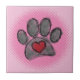 Impresión de garra de perro y acuarela de corazón en rojo, negro y gris. Efecto de semitono aplicado a la imagen. Versión rosa de fondo. Baldosas de cerámica personalizado. Idea de regalo para los amantes del perro.