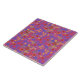 Una moda de azulejos cerámicos, con un patrón de mini impresión floral de bonito sobre un fondo magenta. Añadir un marco de madera para usar como Trivet. Este patrón, que forma parte de la colección "Granny Print" de Posh & Painterly, se puede ajustar fácilmente para que se ajuste a cualquier mosaico de cerámica.