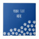 Tejas de perro blancas al estilo personalizado imprimen azulejos de cerámica. Fondo azul. Editar texto para hacer que estos azulejos decorativos sean únicos. Idea de regalo para los amantes del perro y sus mascotas.