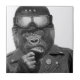 Las características del este diseño un gorila se vistieron en una chaqueta de cuero, gafas y casco.