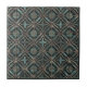 This metallic-look ceramic tile features a bold geometric pattern inspired by industrial metalwork and aged architectural details. Diamond motifs alternate with stylized cross-star shapes, each rendered with a distressed metal texture in deep teal, oxidized bronze, and weathered charcoal tones. The design has the appearance of hand-tooled metal with subtle patina, giving the tile a rugged, vintage, and artistry-rich character. Perfect as a standalone accent or as part of your mixed-and-matched metallic tile collection, this piece adds a striking industrial elegance to any space. Search ID1227 to see other metallic geometric designs in this series. Note: design adapted from generative content.