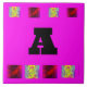 La "A" inicial en negro con arte abstracto sobre baldosas de cerámica magenta.