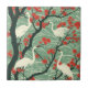 A graceful seamless pattern ceramic tile inspired by Japanese art, featuring elegant white cranes perched among blooming cherry blossom branches. The soft sage-green background with flowing wave motifs creates a serene and timeless aesthetic. The combination of delicate red blossoms and slender cranes evokes balance, peace, and natural beauty.