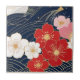 This ceramic tile features a vibrant design inspired by traditional Japanese art, blending deep navy waves, delicate cherry blossoms in red and pink, and subtle golden accents. Perfect for adding a touch of ethnic elegance to any space, this bohemian-style tile works beautifully as part of a backsplash, accent wall, or decorative mural in kitchens, bathrooms, or living areas. This is Tile 5 of 8 in the "Japanese Waves and Blossoms" collection, designed to create a stunning cohesive mural when assembled with the full set.