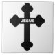JESÚS EN TEXTO BLANCO EN UNA CRUZ NEGRA