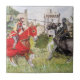 Esta baldosa de cerámica muestra mi pintura acuarela de dos caballeros medievales envueltos en una justa improvisada, frente a un castillo. Esta pintura se basó en una escena de la vida real en el Castillo de Chilham, Kent England.