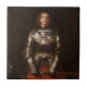 Este diseño presenta una pintura del artista inglés Sir John Everett Millais, que fue uno de los fundadores de la Hermandad Previolácea. Es un retrato poderoso e introspectivo de la heroína francesa, capturándola en un momento de profunda conexión espiritual. Pintado en 1865, este trabajo ejemplifica la dedicación de Millais a los detalles, la precisión histórica y la profundidad emocional. Juana de Arco es retratada arrodillada en el interior de una habitación revestida de madera, vestida con un traje de armadura. El entorno es sencillo y la atención se centra en la propia Joan. La armadura, reproducida con precisión meticulosa, luce con una capa metálica, destacando la habilidad de Millais para capturar la textura y el peso del material. Esto contrasta con la cara joven y serena de Joan, que está iluminada suavemente, enfatizando su pureza interior y devoción. La postura de Joan es de humildad, sumisión, religiosidad y rezo; se arrodilla en un piso de piedra, con las manos apretadas alrededor del cordón de una espada que ella sostiene justo delante de ella. La espada, símbolo de su misión divina y de su papel marcial, es central en la composición. La mirada de Joan se dirige hacia arriba, sus ojos se llenan de una mezcla de determinación y fervor espiritual, como si estuviera recibiendo la orientación de Dios en los cielos de arriba. La paleta de colores de la pintura es sobria, con tonos suaves que realzan la solemnidad de la escena. El fondo oscuro sirve para atraer la atención del espectador hacia Joan, creando una atmósfera íntima, casi sagrada. El juego de la luz y la sombra a través de su armadura y su rostro añade profundidad y dimensión a la obra, haciendo que Joan parezca físicamente anclada y espiritualmente elevada. La representación de Millais de Juana de Arco es tanto un tributo a su significado histórico como una meditación sobre los temas de fe, deber e inspiración divina. La pintura resuena con una sensación de fuerza tranquila y determinación inquebrantable, retratando a Joan no sólo como guerrera, sino como una joven mujer profundamente conectada con su vocación espiritual. A través de esta pintura, Millais ha capturado la esencia misma del carácter de Joan: su valentía, su piedad y su disposición a cumplir su misión que Dios le dio.