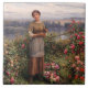 Este diseño presenta un cuadro del artista estadounidense Daniel Ridgway Knight (1839-1924). Muestra a una atractiva joven mujer con arañas de jardinería en sus manos. Ella ha estado cortando las flores de los rosas para recogerlas en cestas. Es una hermosa escena de jardinería tradicional y recolección de flores. Al fondo, hay un gran lago, el cielo es luminoso pero turbio. A menudo se ve a los rosas como un símbolo del amor romántico. La obra original fue pintada en 1900.