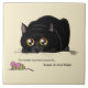 El gato negro está a punto de saltar y hacer la "maniobra de gatitos". Ratón de juguete cerca del gato negro.