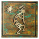 ¡Brilla tu casa con este exclusivo "One of a Kind" del suroeste de Kokopelli Tile! Se presenta un Kokopelli del Suroeste en oro y negro jugando a la flauta y bailando bajo el sol en un fondo de cobre y turquesa! Este es un diseño de arte original del artista Kerry Miller.