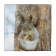 El diseño presenta una fotografía de primer plano de una ardilla linda con sus patas juntas. Está parado en un paisaje nevado con una bola de nieve entre sus patas. Es una escena completamente adorable.