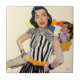Artista: Mike Ludlow | Mujer vestida con traje de rayas blancas y negras mira hacia atrás al hombre en el sofá