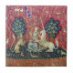 La Dama y el Unicornio, Sight (La Dame a la licorne, La vue) Tapiz Medieval (alrededor de 1500). Este tapiz es parte de una serie de seis. Cada tapiz cuenta con una dama medieval en varias poses. Cada escena representa uno de los cinco sentidos, así como una sexta escena etiquetada como Mon Seul Desir (mi único deseo).