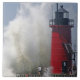 DERECHOS DE AUTOR Mark Gibson / DanitaDelimont.com| US23 MGI0051.jpg| Gente en el muelle observa grandes olas de ruptura en South Haven Michigan