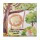 Hermoso y caprichoso diseño con un cachorro de león jugando en el columpio con otros animales como zorro, conejito, pájaros y una mariposa con elementos de naturaleza ondulada. ¡Añade a tu hijo o a cualquier nombre de destinatario para agregar un toque personal!