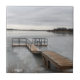 Baldosa de cerámica con foto de un muelle en un lago congelado.