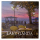 Una hermosa vista de una espectacular puesta de sol sobre el lago de Garda en Italia impresa en una baldosa de cerámica.