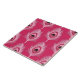 Baldosas de cerámica en papel textil de plumas de pavo real, ejecutadas en Adobe Illustrator y Photoshop - plumas rosa pastel, con un ojo en tonos fucsia, burdeos, rosa de coral y negro, sobre un fondo rosa fucsia profundo