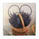 Una muy linda exhibición de lavanda en una canasta sobre una antigua silla rústica. Foto tomada en julio de 2017 en una granja Lavender en Oregón.