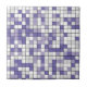 Esta baldosa cerámica presenta un patrón cuadrado geométrico monocromático en tonos violetas de lavanda y periwinkle, gris claro y blanco. Los cuadrados están coloreados en un patrón aleatorio y se pueden editar los colores en la herramienta Diseño.