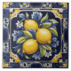 Azulejo Lemons Mediterranean Dark Blue Italian Folk Art