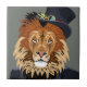 Este retrato de las características del diseño de un león en el traje de negocios y el gorra de un hombre.